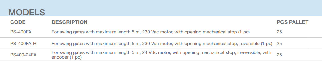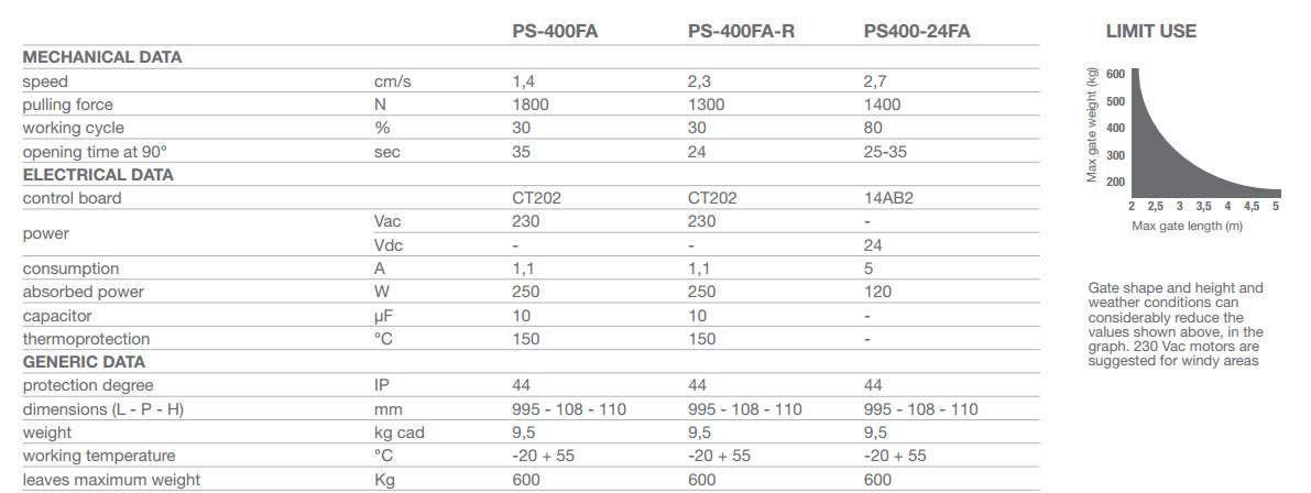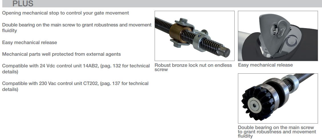 Electromechanical gear motor for swing gates with leaves up to 5 m, 230 Vac